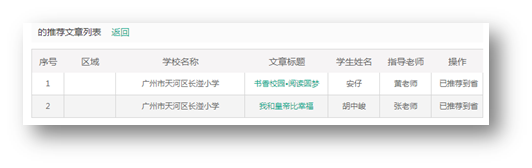 荐上来的读后感统计列表,点击“查看”进入到各班级推荐的读后感列表。