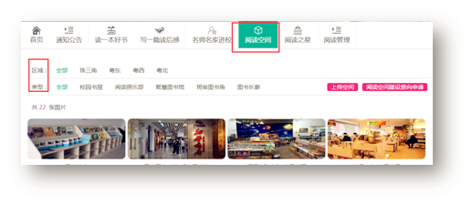 Ø 点击“阅读空间”进入阅读空间展示列表页面。