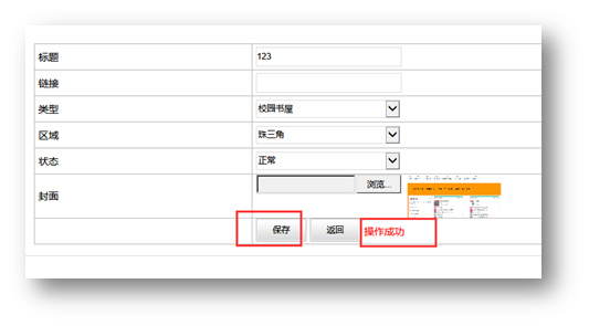 Ø 输入“标题”,选择“类型”、所在“区域”并添加封面,然